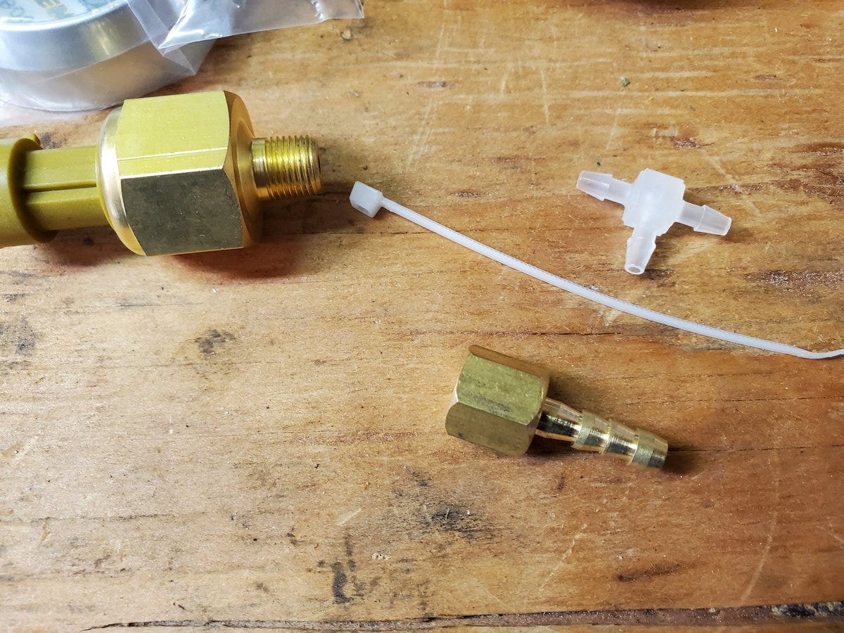 They included an adapter for the presser sending unit so I can connect the vacuum line, a T fitting, and a single zip tie. Cute.
