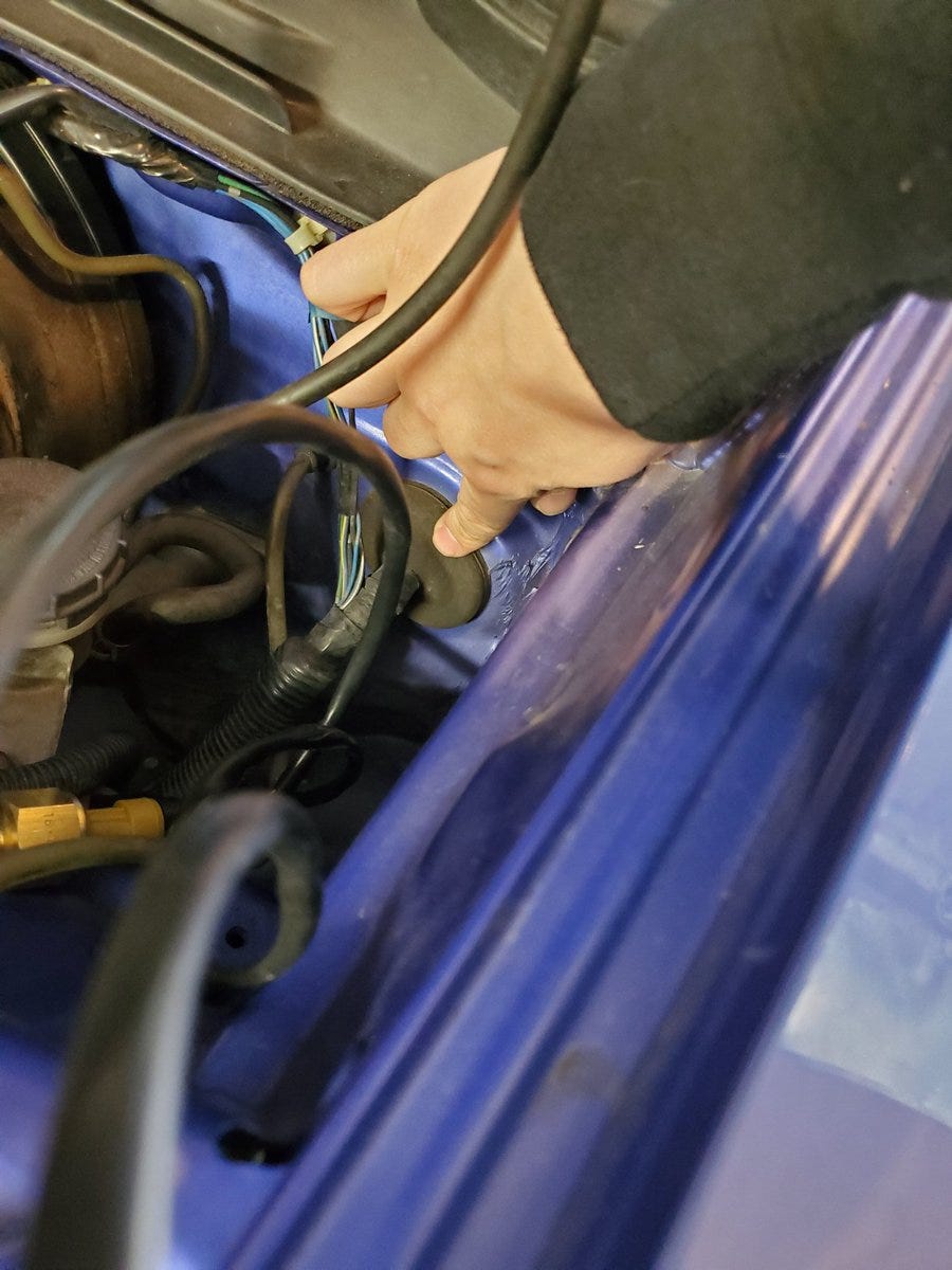 Now that I have my data sources installed in the engine bay it’s time to pry up this rubber plug so I can pass the wires into the cabin.