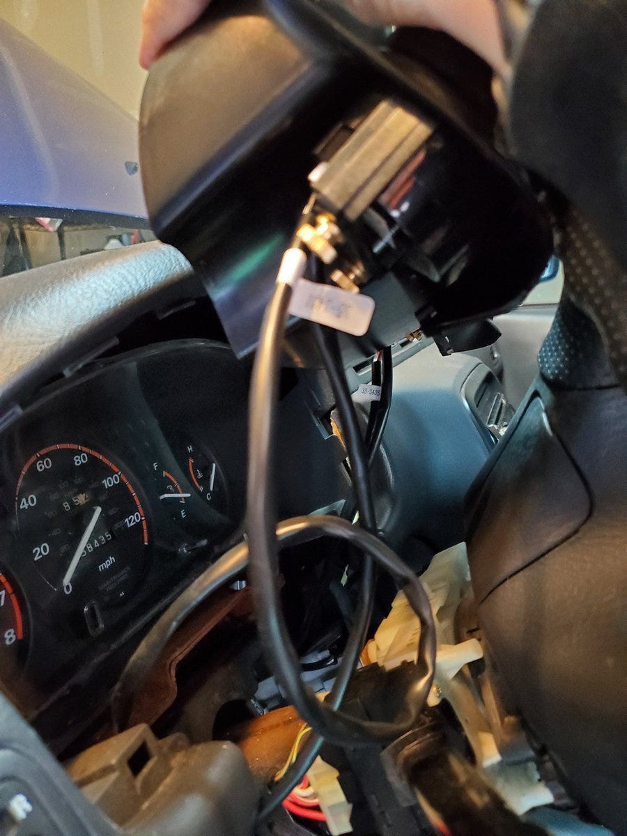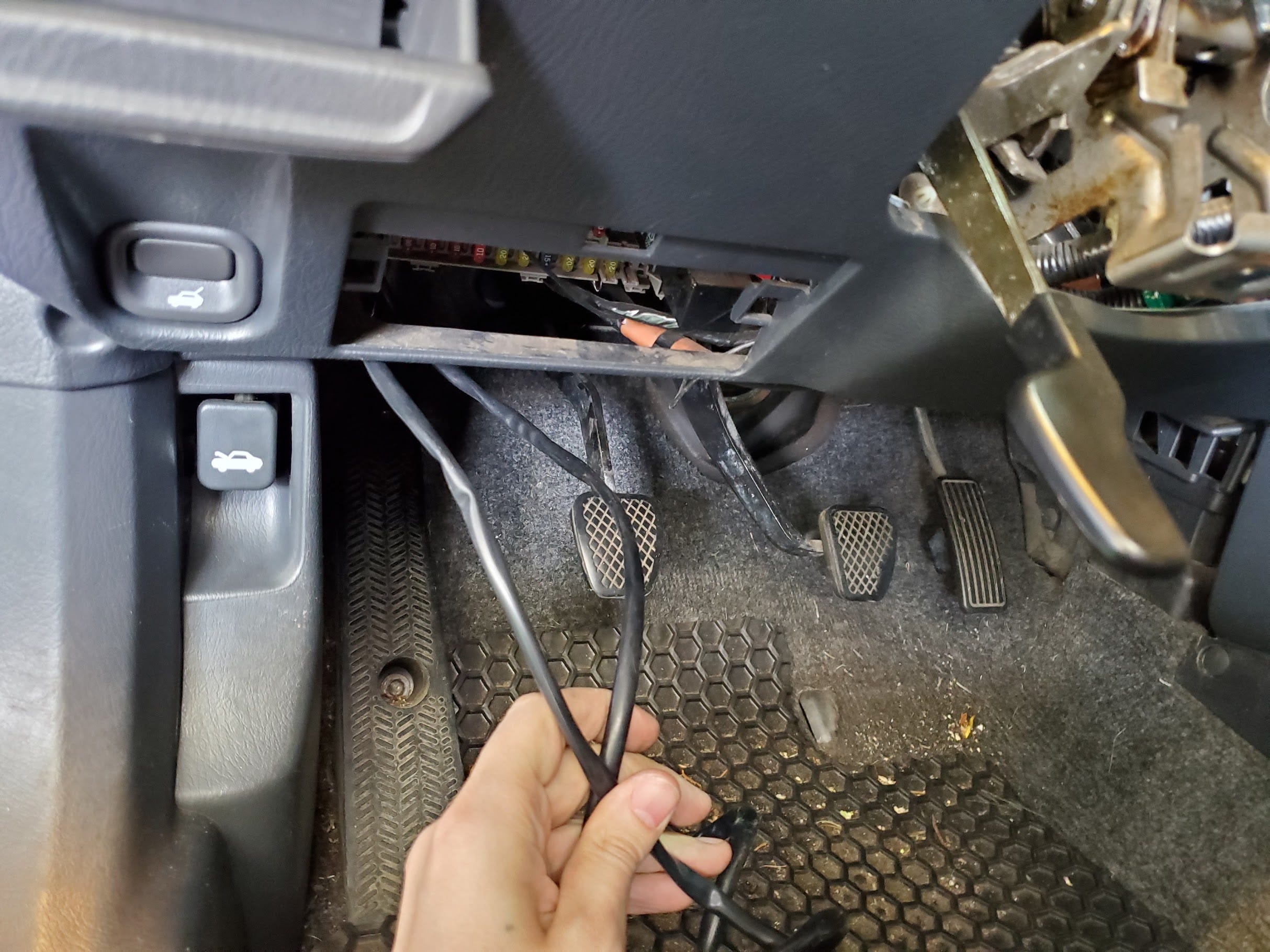I soldered that in and wrapped it in tape. All I need to do is tuck the ECU back behind the kick panel and I’m done!