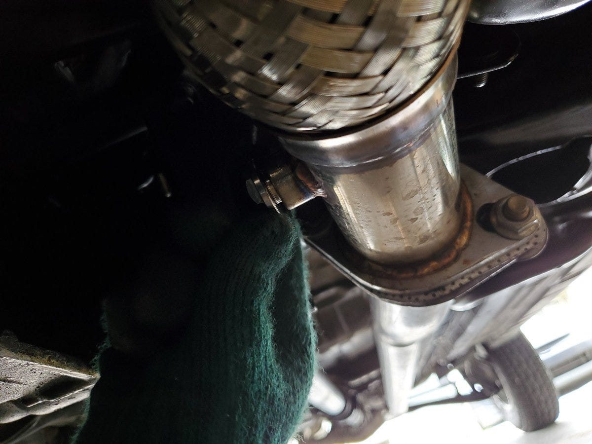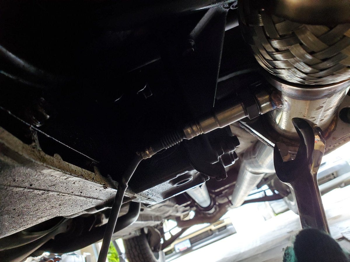 These gauges both require getting some sort of data from the engine bay into the cabin of the vehicle. I’m going to begin with the parts that go in the engine bay. First, I’ll install the o2 sensor which is needed by the air/fuel wideband. I need to remove this plug from the exhaust downpipe
