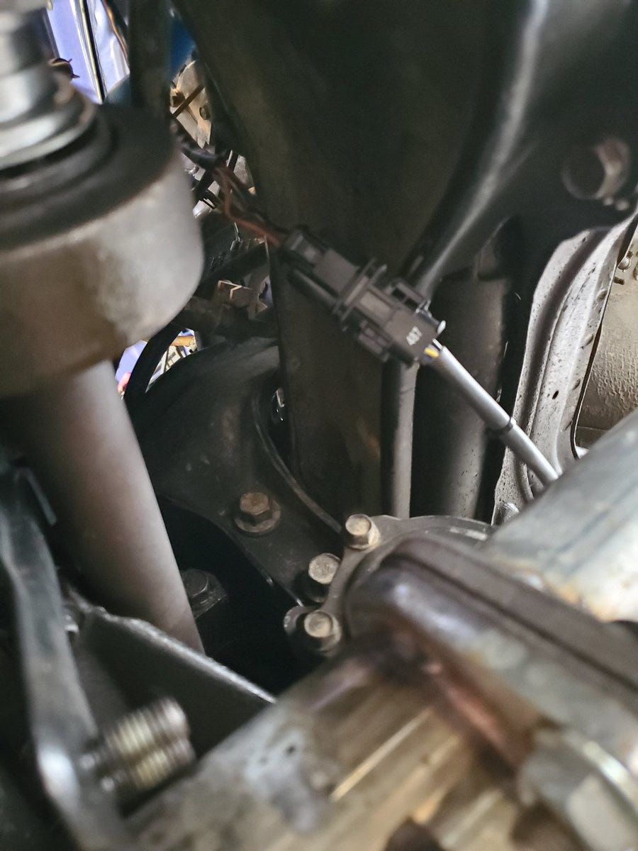 Here’s where the harness meets the sensor. I’ll need a lot of zip ties to keep the wiring away from that axle.