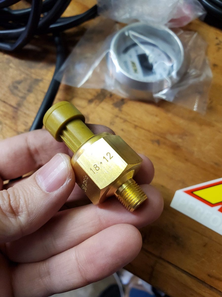 Here’s the T installed and plumbed to the pressure sender. I’m a little disappointed that a kit at this price didn’t include a bracket and some self tapping screws but I guess I’ll just zip tie the brass unit to the factory wiring.