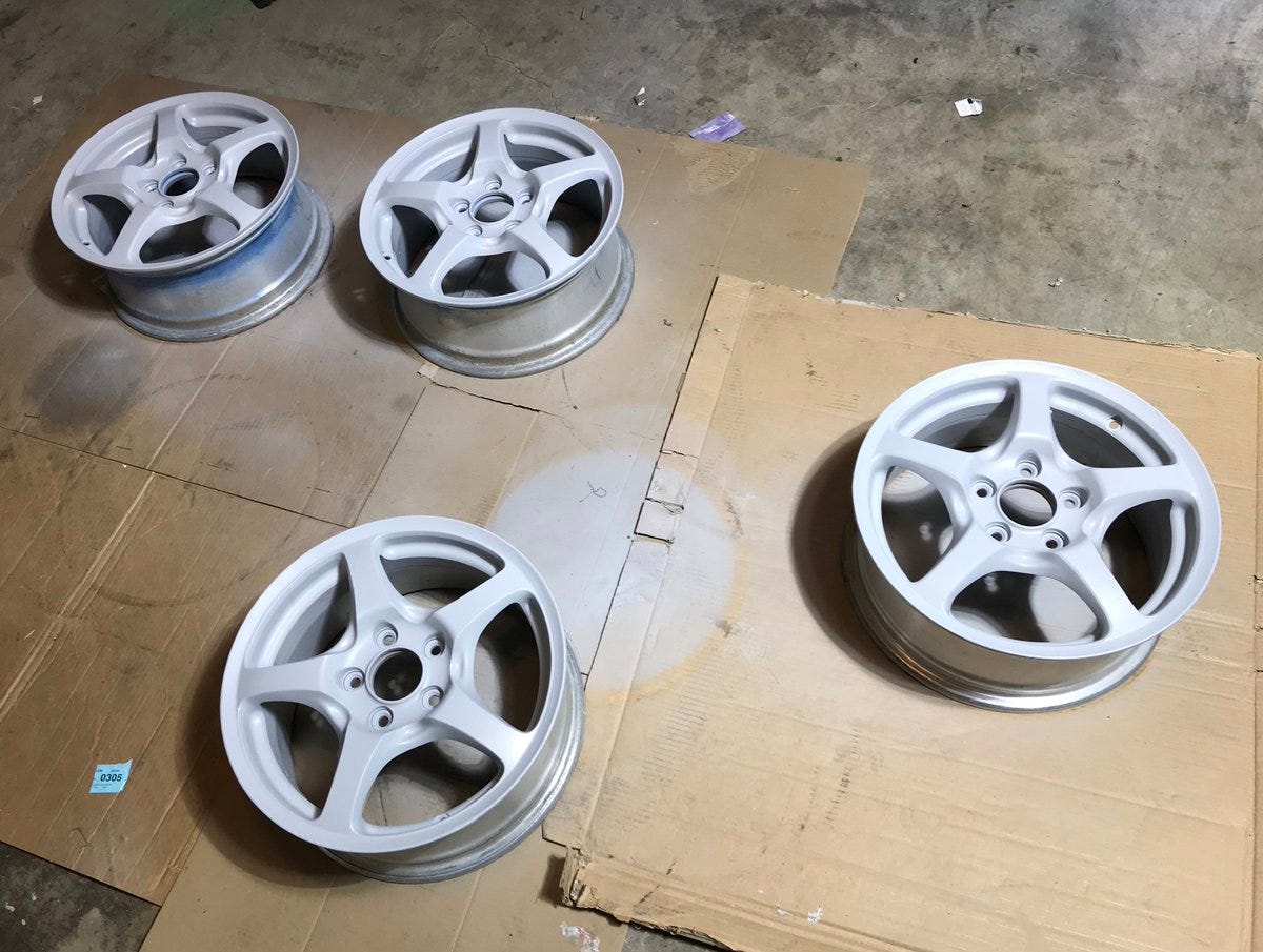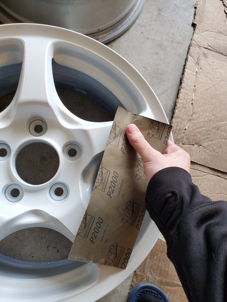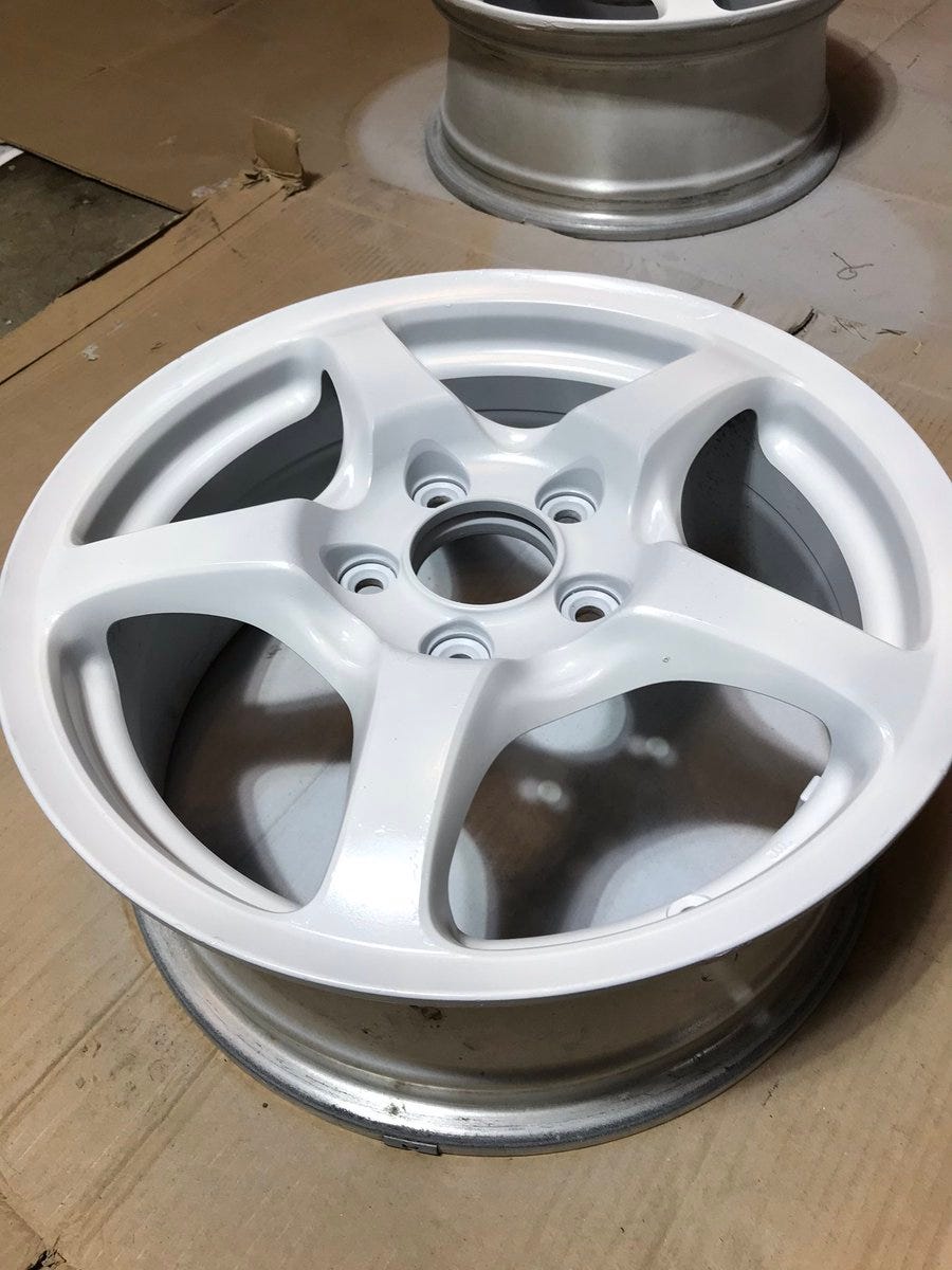 Here is after 3 coats of white. I go light with these first few coats while always focusing on the nooks and edges and not so much on the face of the wheel.