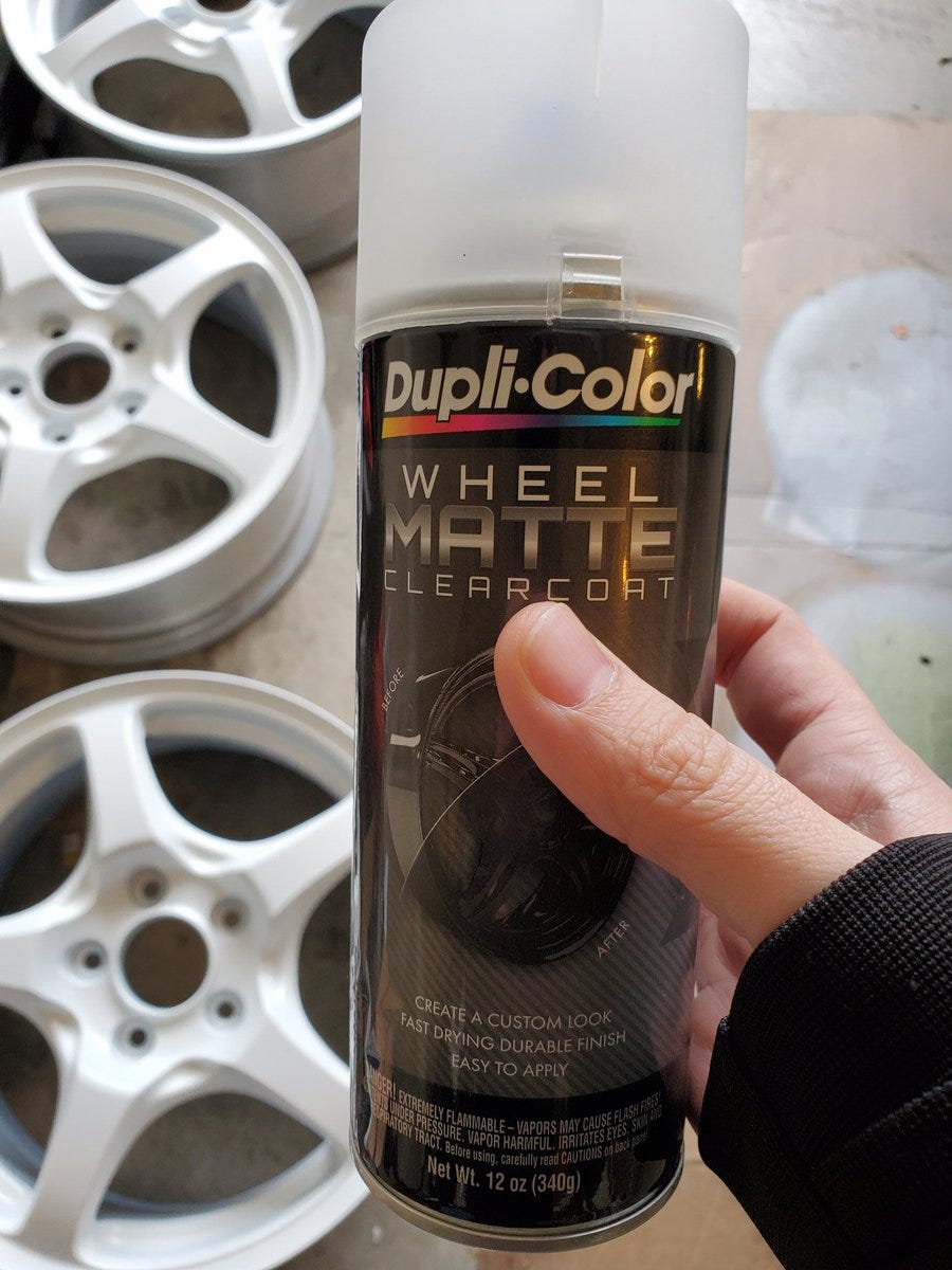And I finish off with 4 coats of Duplicolor wheel matte clearcoat. This is not strictly necessary but will affect how durable this paint is in the long run.