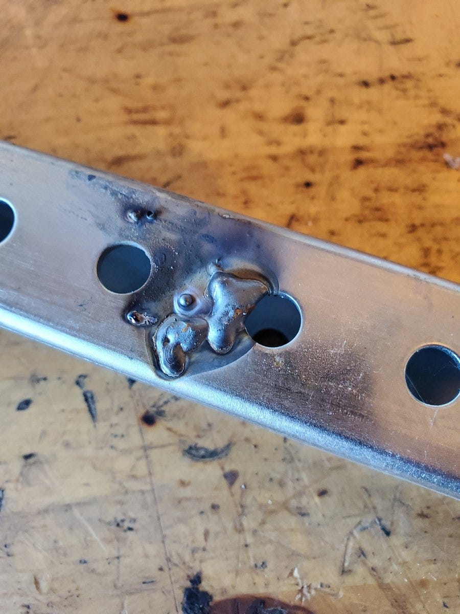 I welded the back side and then took a hammer to it to see if the welds would break. They didn’t! Thanks for following along. I’m going to go join every piece of metal in my garage now.