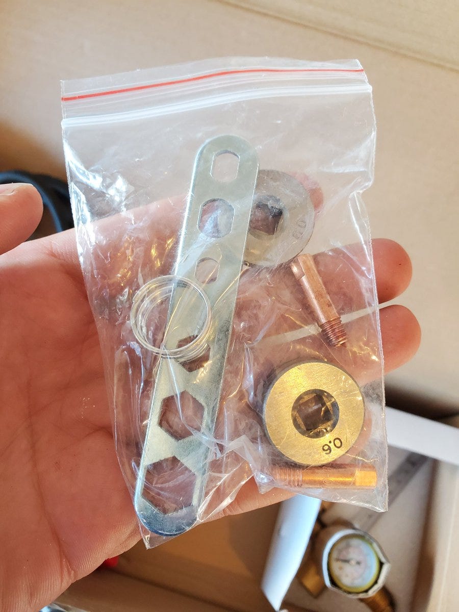 It comes with what I think are torch tips and some other hardware I don’t know the purpose of (yet).