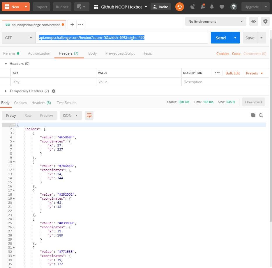 Github is doing this programming challenge call NOOP which basically means functions that do nothing. It’s stuff that has no purpose. We are just dorking around for the sake of it. I love it. We are going to use @github’s web-exposed API for their first challenge, Hexbot, to try out Postman.
