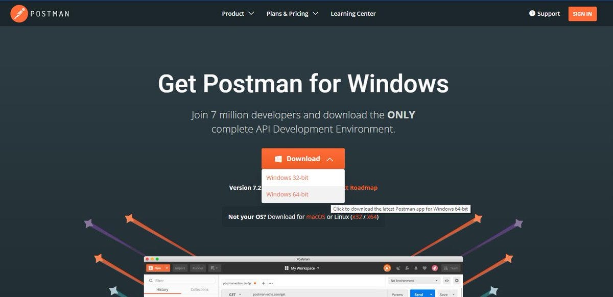 Let’s just talk to the API, yeah? First let’s download Postman. Postman is free software that lets you test APIs. You can test other people’s public APIs, like we will do today.