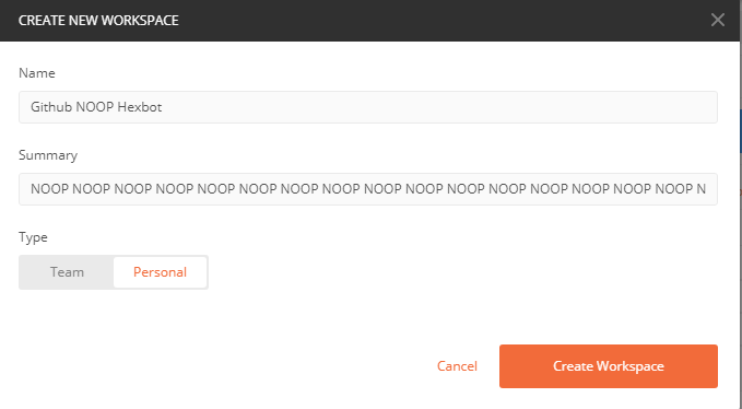 Hit “Create New” and name your Workspace. I named it Github NOOP Hexbot so I don’t accidentally use this workspace for real work later.