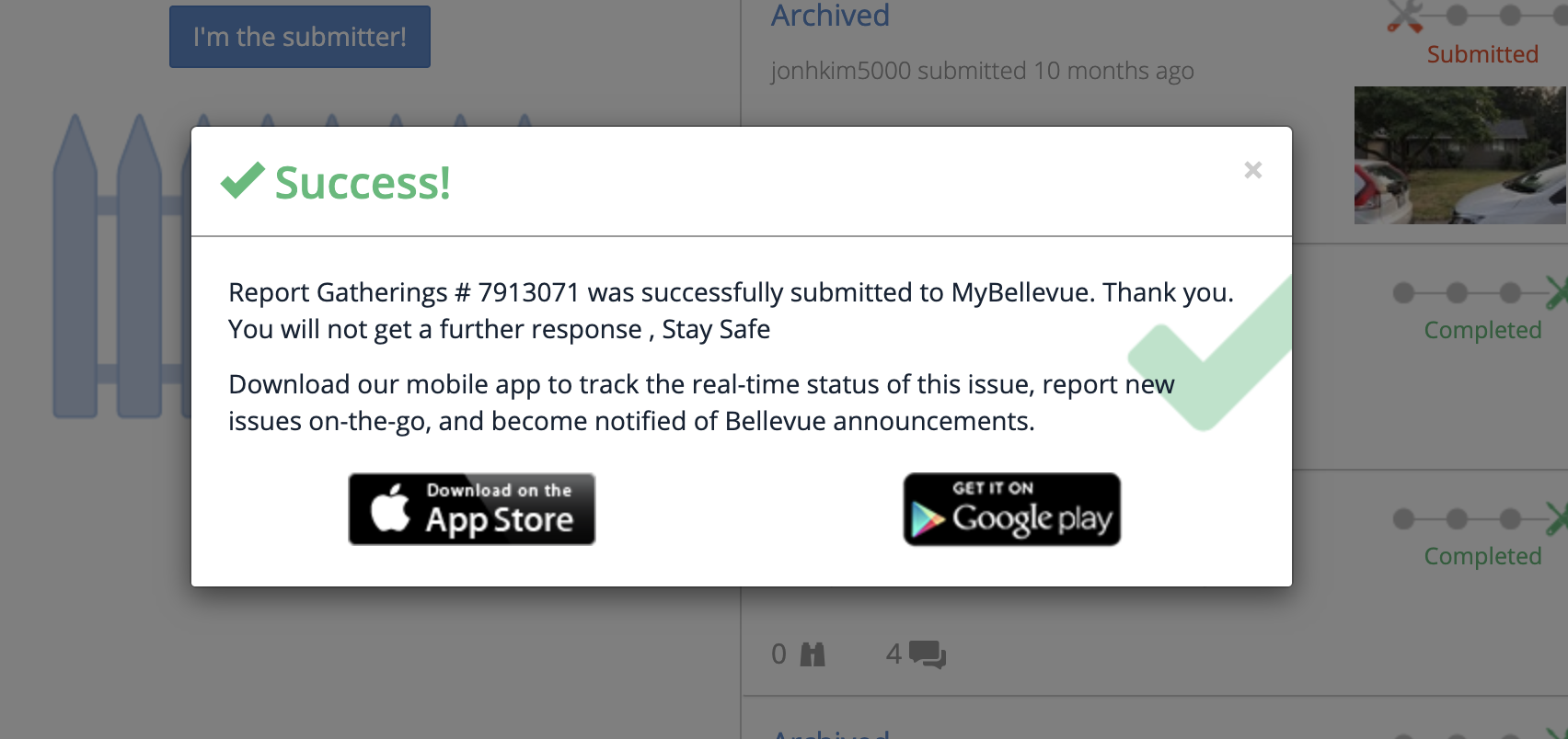We’re going to analyze Bellevue’s website to see how we can submit a “report” with code without clicking around on the page.