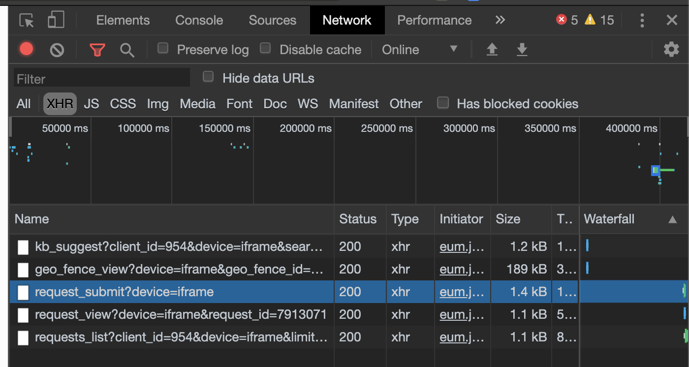Network tab results