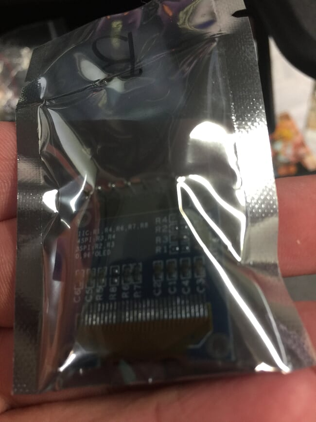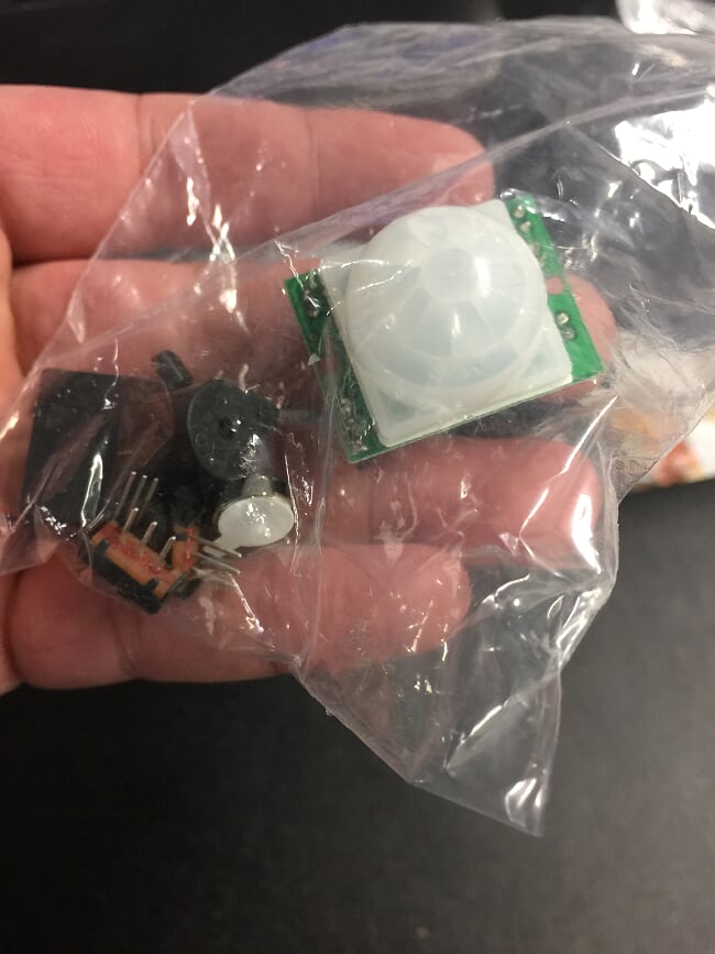 Ok, I have no idea what this is. It’s big and it has some electrolytic capacitors and resistors on the back, as well as a little processor. The bag contains a piezo buzzer, some buttons, and a little vibrating motor. So you can make all kinds of sensors and haptic feedback stuff.